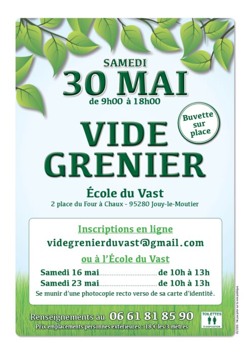 Brocante du Vast (inscription en cours pour les exposants. Contacter directement l’association par mail à videgrenierduvast@gmail.com ou à l’école du Vast le samedi 16 mai et le samedi 23 mai de 10h à 13h en se munissant d’une copie recto/verso de sa carte d’identité. renseignement : 06 61 81 85 90)